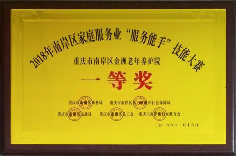 荣获2018年南岸区家庭服务业“服务能手”技能大赛一等奖